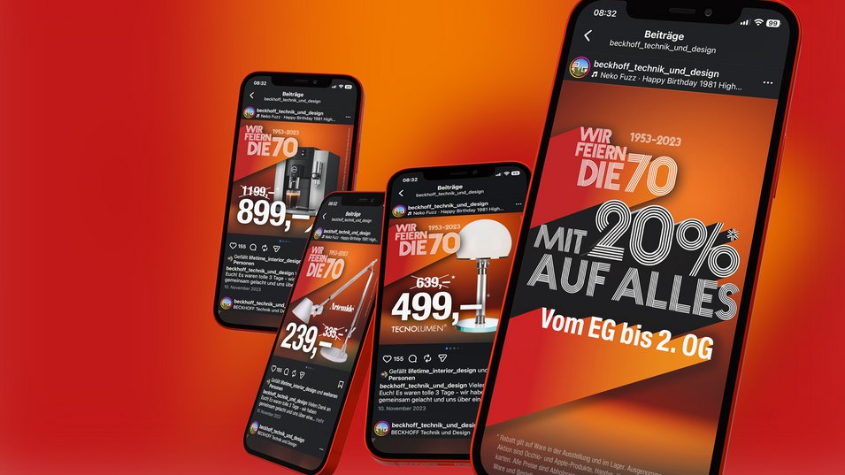 Ostwestfalens hochwertigster Fachhandel für High-End-Haushaltsausstattung: Elektrogeräte, Leuchten, Unterhaltungselektronik, Kaffeevollautomaten, Heimkinosysteme… Dafür stellen wir alles Aktionale und Promotionale auf die Bühne.