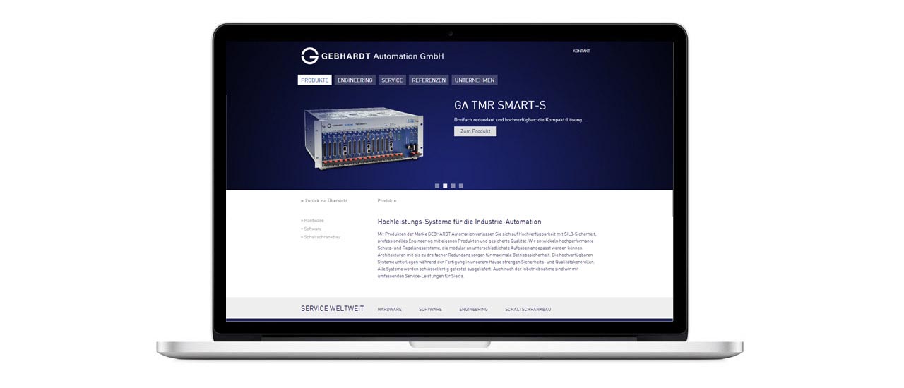 Für unseren Kunden haben wir einen leistungsstarken TYPO3-Auftritt realisiert und ihn per ›Responsive Design‹ auch für mobile Endgeräte optimiert. Potentielle Bewerber können sich so ganz bequem vom Sofa aus per Tablet über GEBHARDT informieren. Und Kunden freuen sich über das stark bebilderte, übersichtlich strukturierte Technik- und Dienstleistungsportfolio.